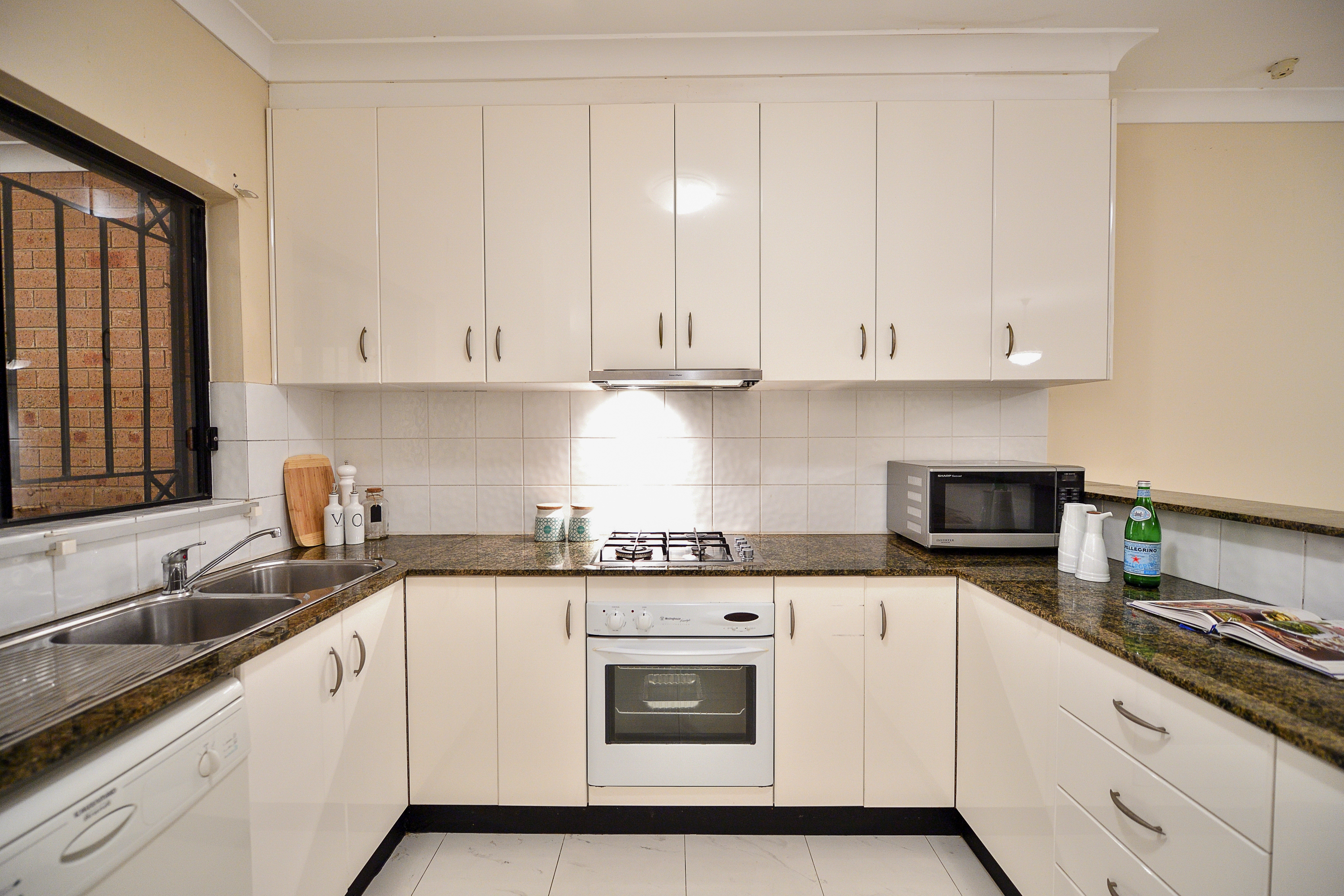 - Granite benchtops with stainless steel gas fittings